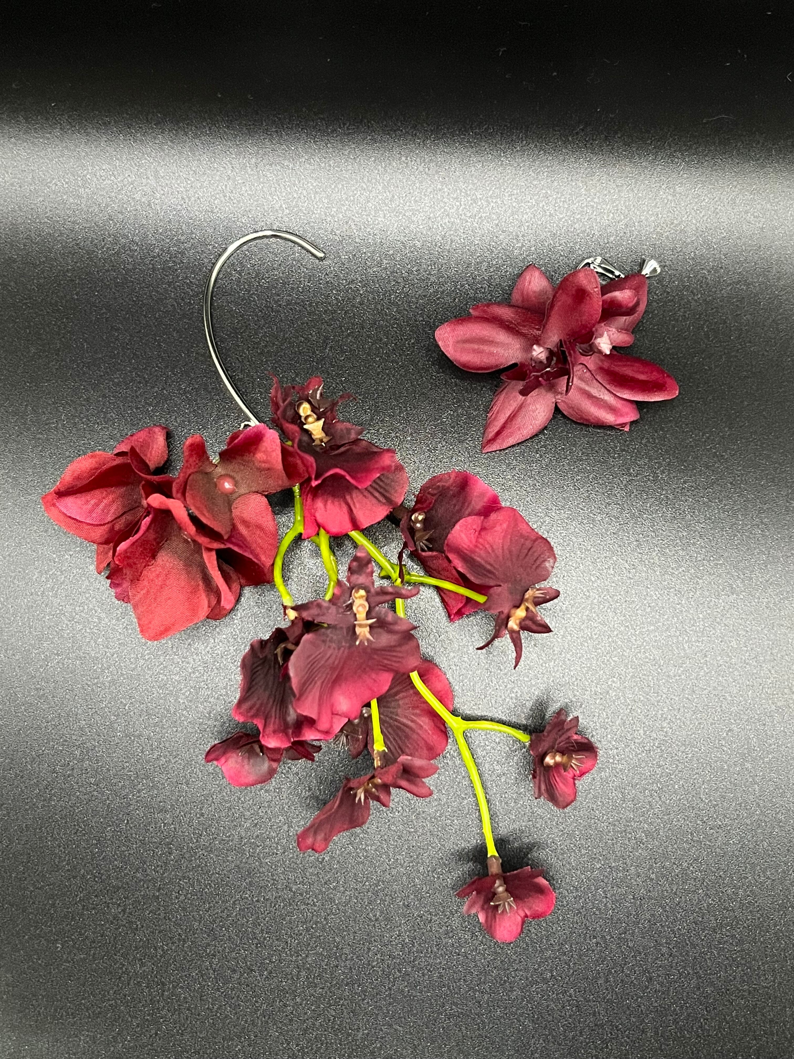 バーガンディカラーのオンシジュームとダリアのアートフラワーブーケです。