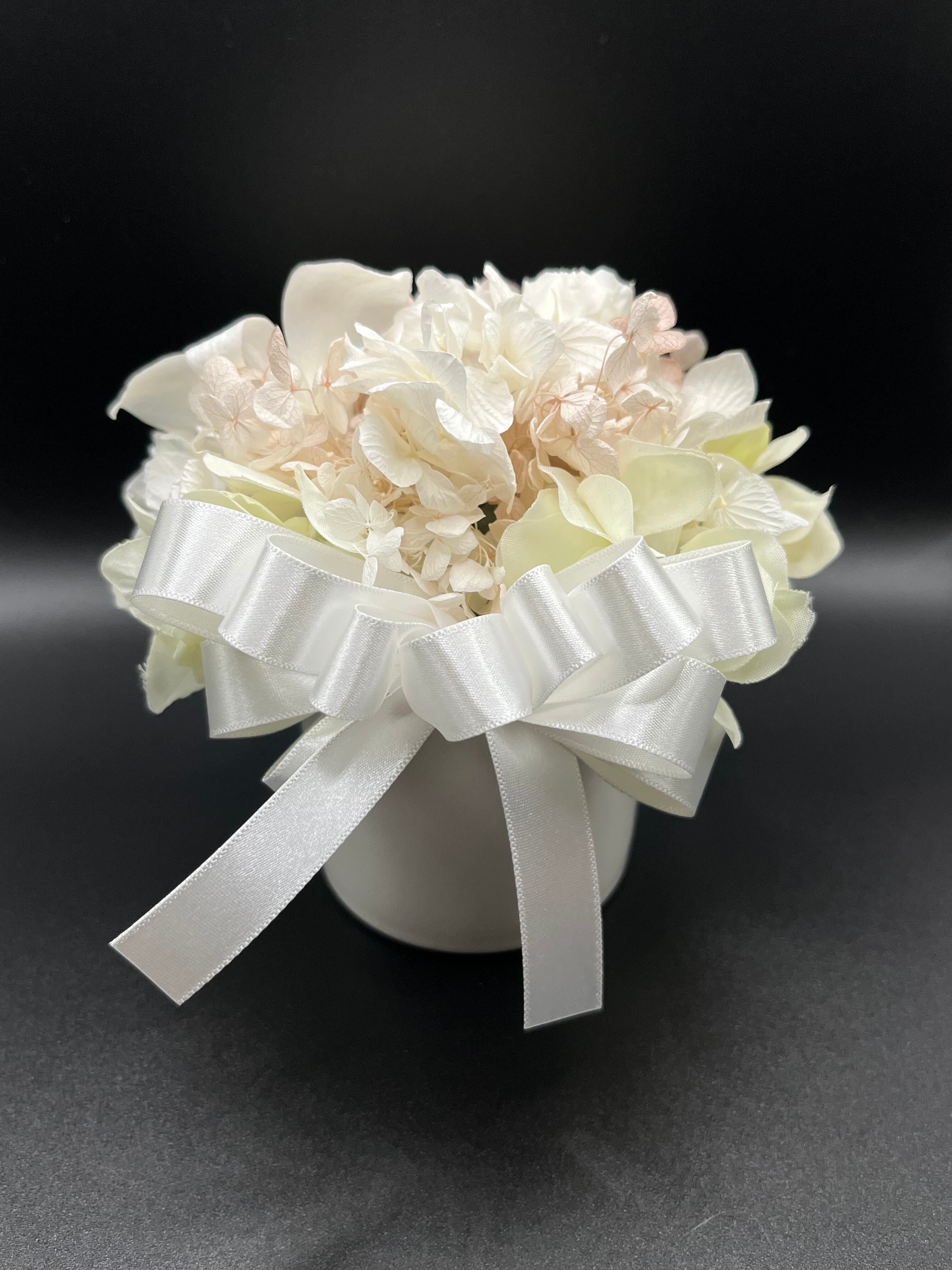 プリザーブドフラワー プリザーブドアレンジメント プリザーブドアレンジ 花 フラワー 白 ベージュ ホワイト インテリア バラ デンファレ お祝い ギフト プレゼント 誕生日 退職祝い 出産祝い 結婚祝い 卒業祝い 新築祝い 開店祝い 引っ越し祝い クリスマス プロポーズ バレンタイン お礼 撮影小物 リビング小物 インテリア雑貨 贈り物 フラワーデザインマリン Flower Design Marin 白バラ 白薔薇 デンファレ