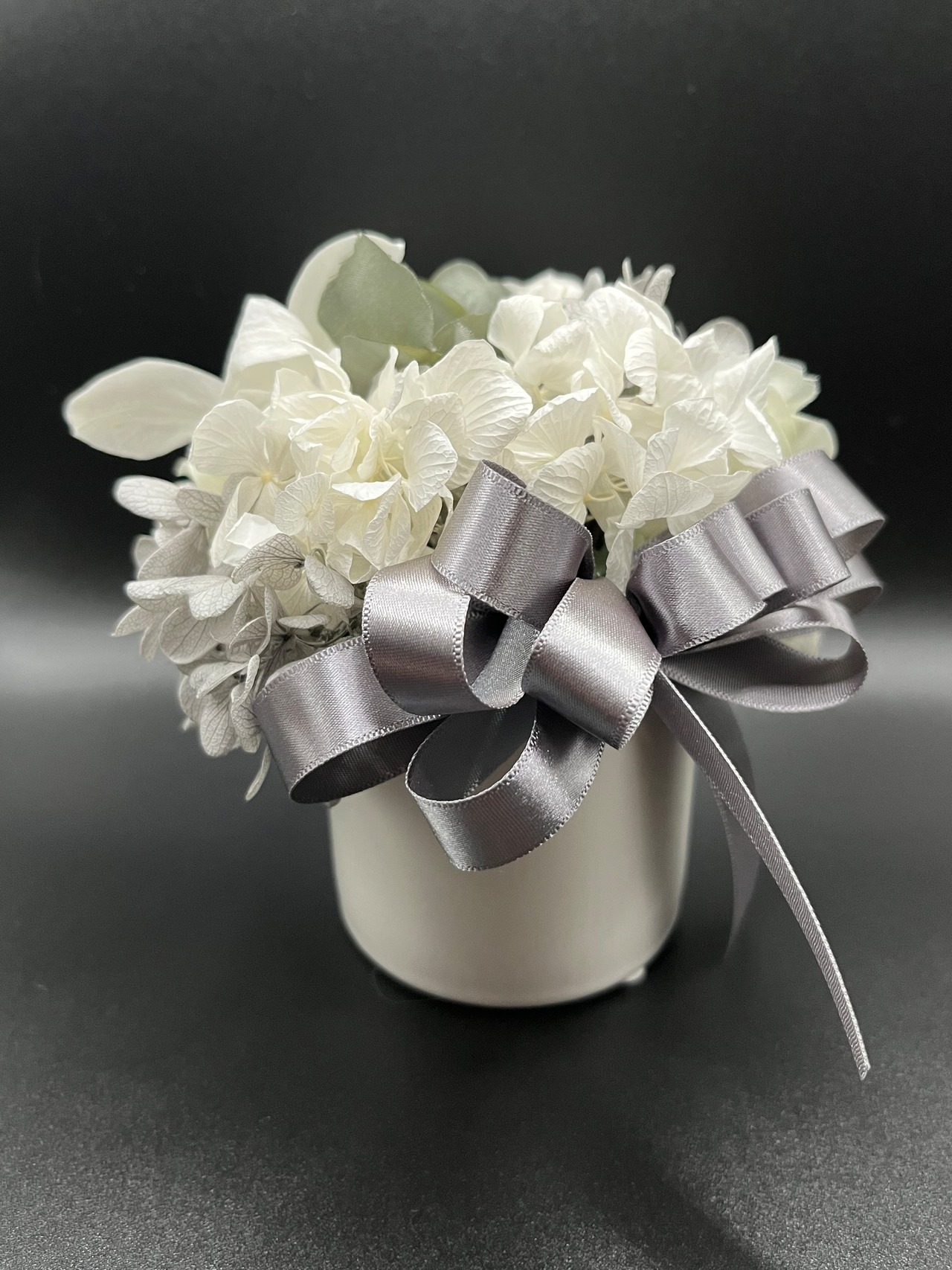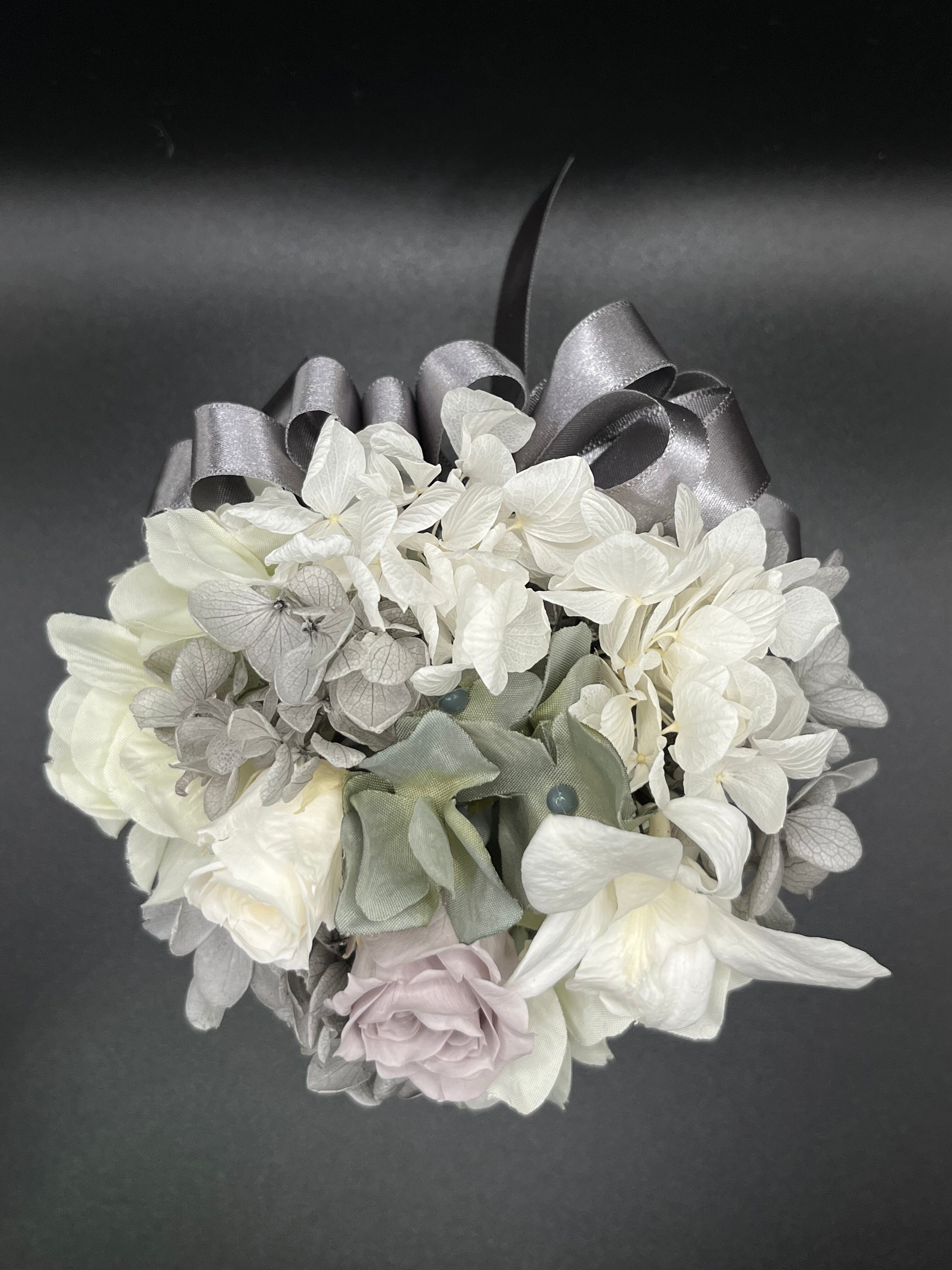プリザーブドフラワー プリザーブドアレンジメント プリザーブドアレンジ 花 フラワー 白 グレー ホワイト インテリア バラ デンファレ お祝い ギフト プレゼント 誕生日 退職祝い 出産祝い 結婚祝い 卒業祝い 新築祝い 開店祝い 引っ越し祝い クリスマス プロポーズ バレンタイン お礼 撮影小物 リビング小物 インテリア雑貨 贈り物 フラワーデザインマリン Flower Design Marin 白バラ 白薔薇 デンファレ